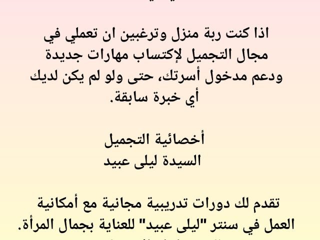 Jun 02 02 June 2021 – مطلوب سيدة لبنانية للأهتمام بالمنزل والاولاد j0eMouns3f2021-06-02T13:26:42+00:00- منزل في منطقة المطيلب - المتن. - يقطنه زوجين مع ولديهما (الزوجين يعملون). -... Read more...